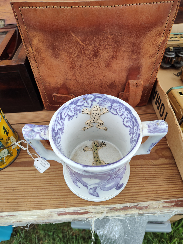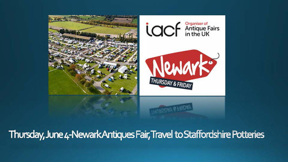 The Conference began on Thursday with an optional day-trip to the famous Brimfield Antique Shows in nearby Massachusetts. We were joined on the bus by long-time transferware dealer and Brimfield regular (before retirement) Ann Berard who provided first time “Brimfielders” with an orientation to the 20+ separate shows running for a mile along both sides of Route 20. The bus dropped us at the “May’s Antique Market” field and we spread out from there. There was much more than just transferware to see, much, much, more, and even a torrential downpour in the afternoon didn’t dampen anyone’s spirit. We all got back on the bus with new-to-us treasures.