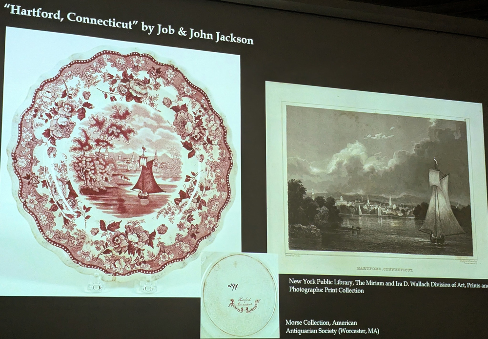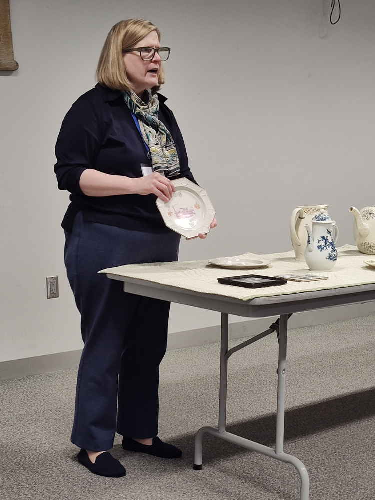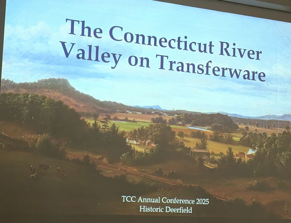In a historic white-steepled church that is now Historic Deerfield’s community center, we enjoyed two lectures by Historic Deerfield staff members (and TCC members) Amanda Lange and Dan Sousa. Amanda’s lecture addressed “Fables, Farmers, and Flirts: Landscape Designs on Early British Transferware.” Dan’s lecture has a more local focus, sharing “The Connecticut River Valley on Transferware.” This was followed by lunch at Champney’s Restaurant in the Deerfield Inn.