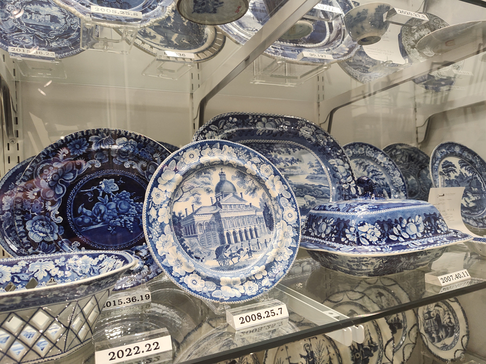 Figure 26 - 30 shown below: Views of transferware in the Historic Deerfield collections storage gallery.