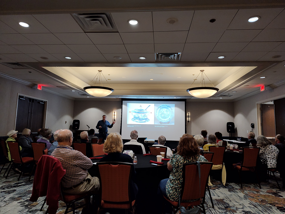 The conference officially kicked off that evening with a buffet dinner followed by a very interesting lecture about Bat-Printed Landscapes on Early 19th Century Porcelain by TCC Database General Editor, Len Kling. This process for transfer printing is less well known than the more common tissue paper transfer process. It was a less mysterious process for us all by the end of Len’s talk.
