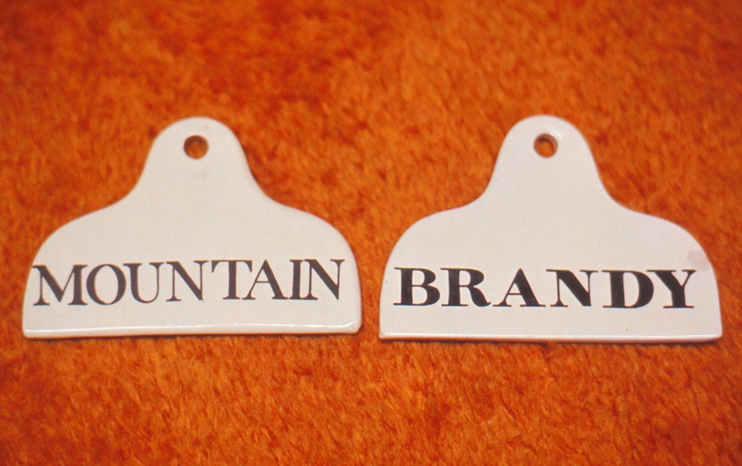 Bin labels. Mountain, a Malaga district sweet wine (Costantia, a sweet wine from the Cape of Good Hope); Brandy
