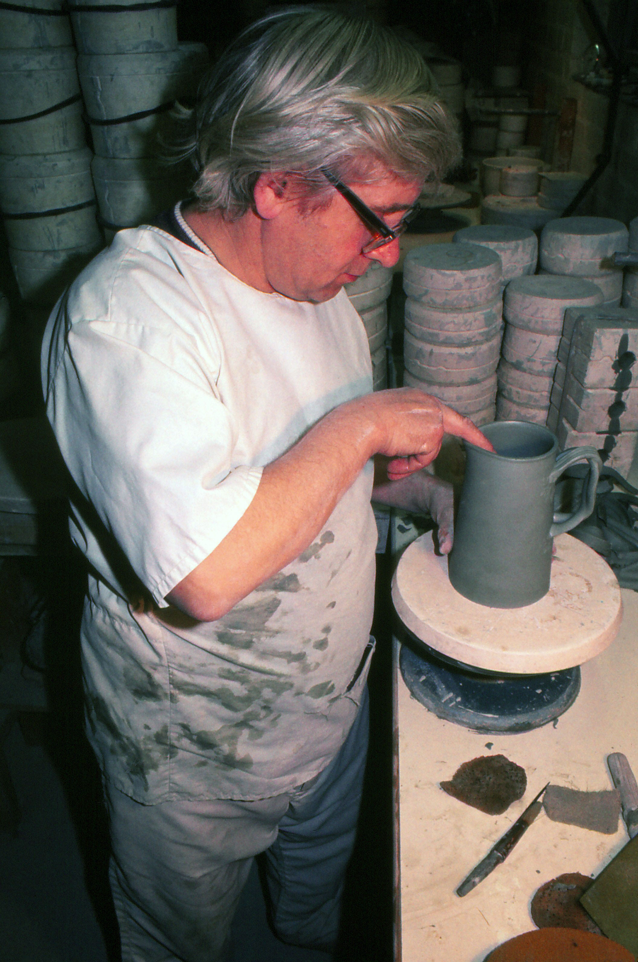 Making a Lowestoft milk jug-gently drawing clay out for snip