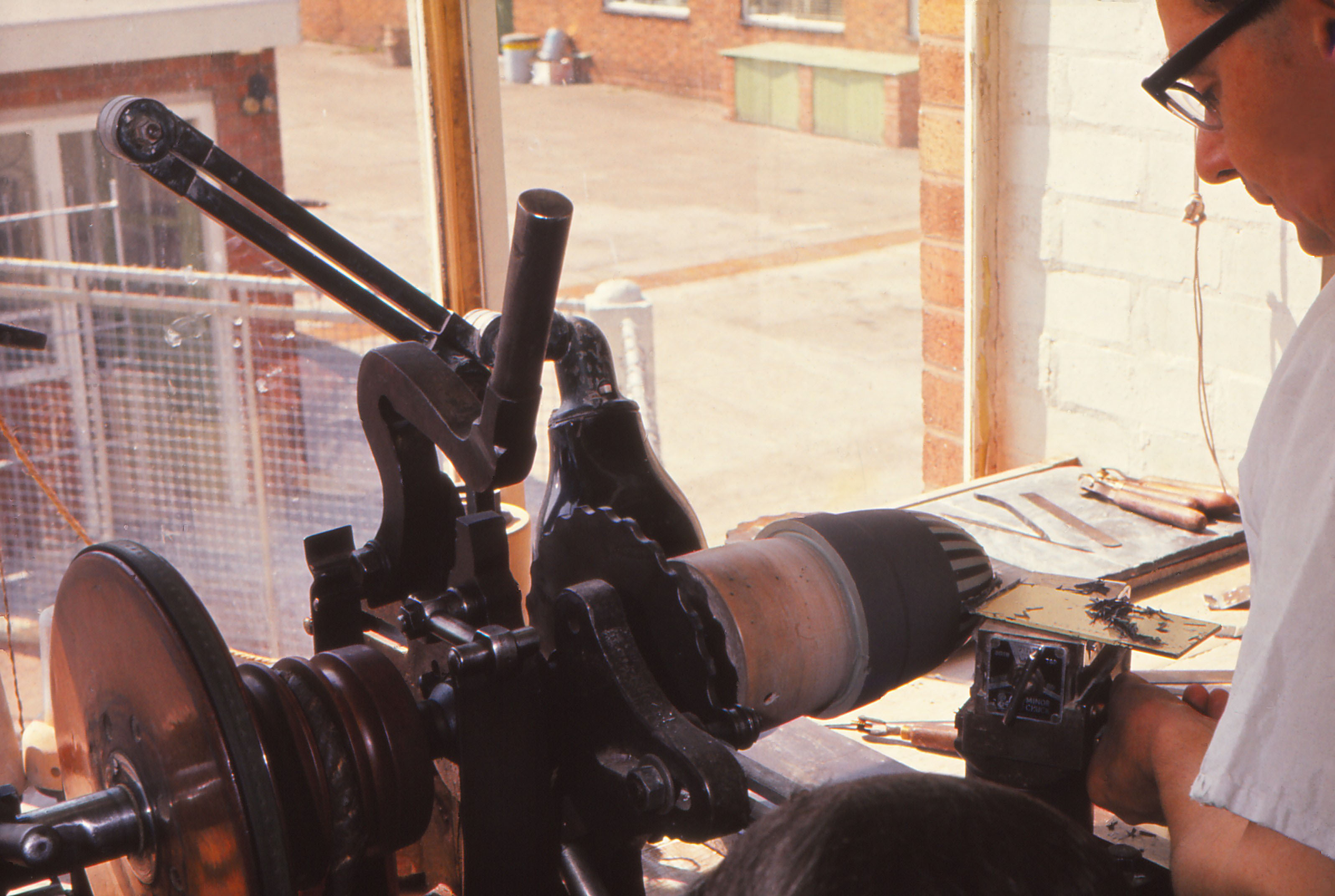 Cutting flutes on a engine lathe, Wedgwood works