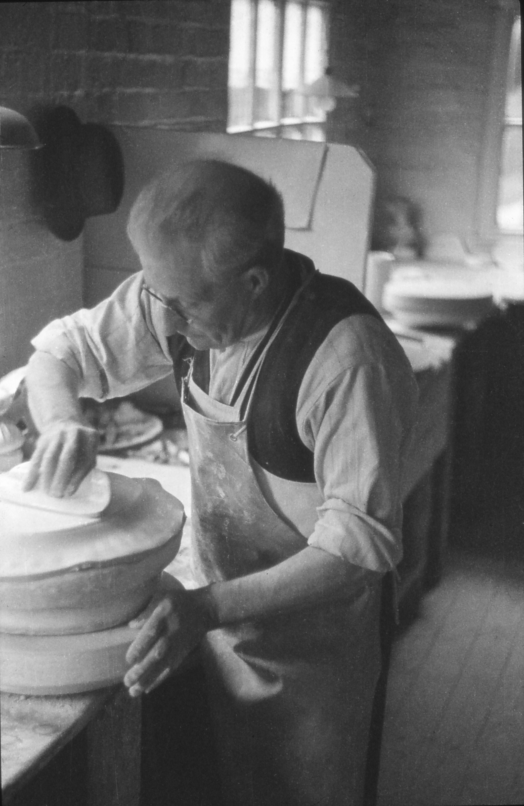 Pressing a dish-picturing bottom of the dish. The tool used is a section made from a fired dish