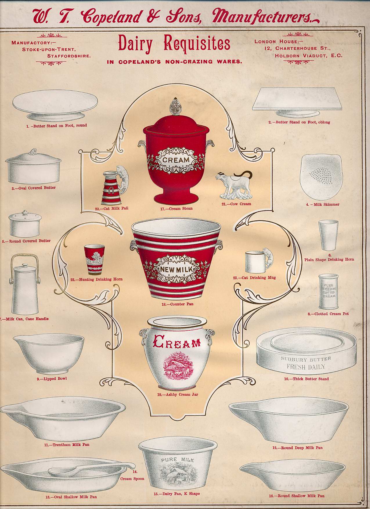 Catalogue page showing variety of dairy requisites shapes