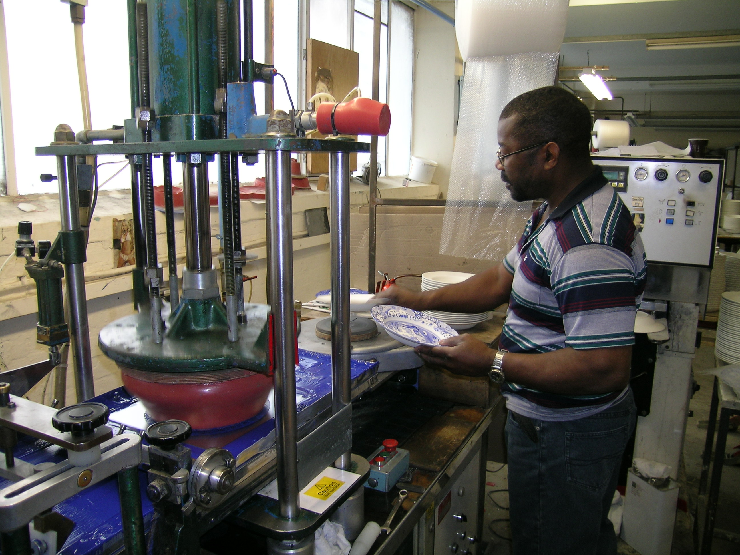 Louis pad printing the last order of Blue Italian soup plates before closure of Spode works