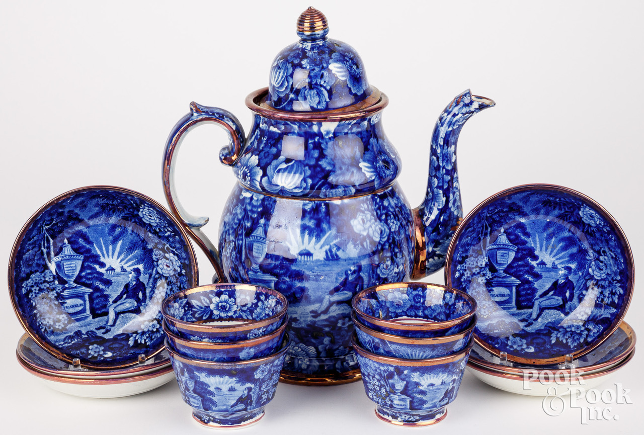 On Wednesday, December 6th, 2023 Pook & Pook will hold its last auction of the year. This eclectic online only sale will include a wide range of items from Native American objects to Antique Toys, Fine art to Decorative Arts. Included in this varied assemblage is over fifty lots of Historical Blue Staffordshire. One of the finest pieces in the group is a lovely Historical Blue Staffordshire Arms of New Jersey platter in beautiful condition. Also sure to catch bidders attention are the six Historical Blue Staffordshire Lafayette at Franklin’s Tomb cups and saucers with lustre rims complete with an exquisite matching coffeepot. Saucers, plates, cups, gravy boats, platters, sugars, vegetables, and more will cross the virtual auction block. Bidding is available on Pook & Pook’s online bidding platform, PookLive (live.pookandpook.com).