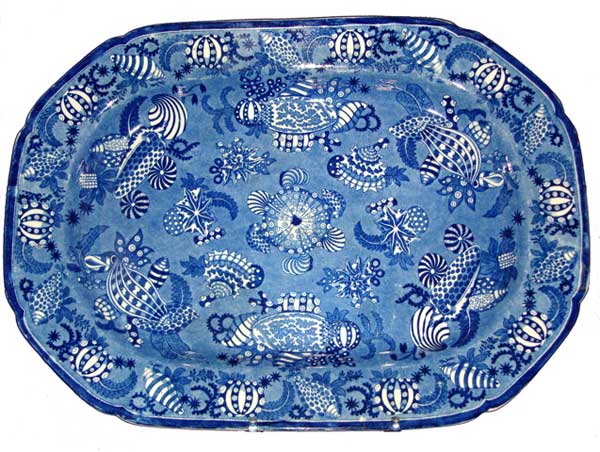 Cells And Feathers Shown is a 6.5 inch teal printed sheet pattern jug with the addition of purple printed feathers in a cartouche, ca. 1840. No reference has been found for this pattern, so it has a TCC assigned name. Members only: for more information about this pattern and to see other similar patterns, search the Pattern and Source Print Database. |