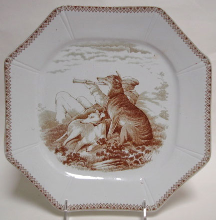 "Sporting Scenes" printed in underglaze brown by J.F. Wileman (1870-1892).